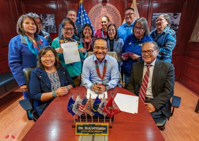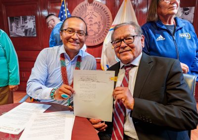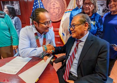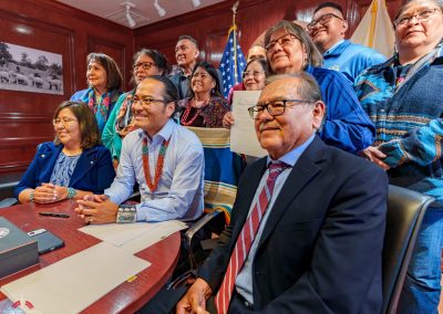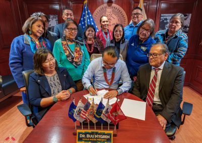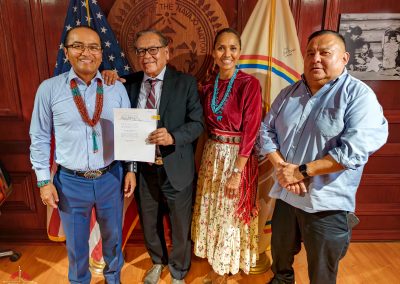 The legislation was signed into law by Buu Nygren, President of the Navajo Nation. In attendance were NTU President Elmer Guy, former NTU Board President Tom Platero, and NTU Board President Tara Denetsosie-Lovato, along with leaders from Diné College and ONNSFA.