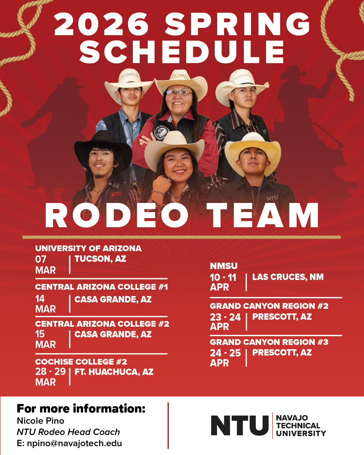Attention students! Join the NTU Rodeo Team as they get ready for the upcoming Spring season. The team will compete at the Arizona College Rodeo on Saturday, March 7, 2026. This event will take place at the Tucson Rodeo Grounds in Tucson, AZ. If you’re in the area, we encourage you to come out and support the NTU Rodeo Team!